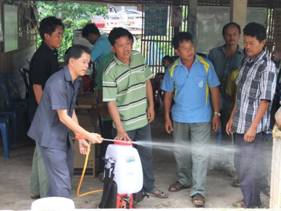 In order to help the communities prevent hazards which might happen in their communities, the target villages get the equipments such as push-pull hand pump sprayers, community radio broadcasting equipments, dry chemical fire extinguisher hand operated siren, rain gauge etc.