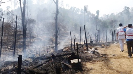 Picture taken on January 21th when fire breaking out in Ban Mae Surin camp was immediately put out by refugees who have been trained by COERR. Then moral support and relief supplies had been provided.