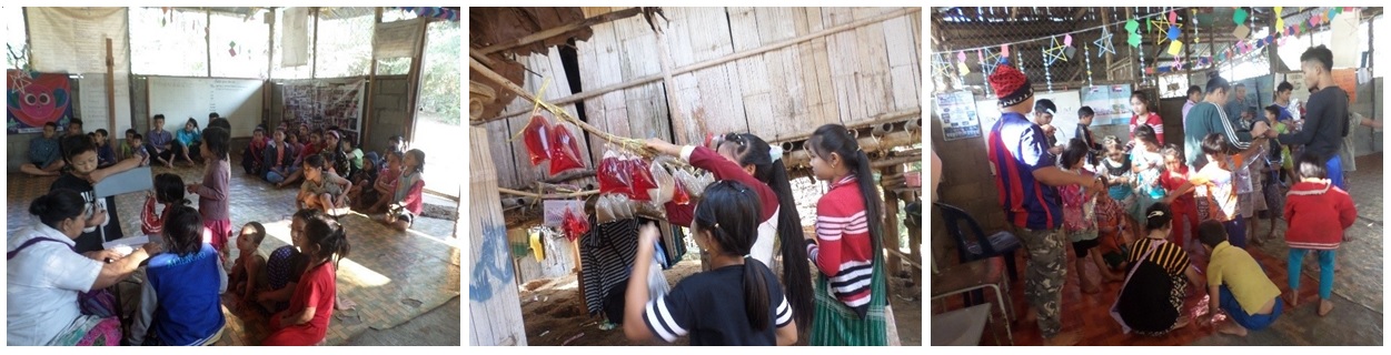 In Ban Mae Lama Luang camp, 187 children separately marched to household and replaced the leaked bags with the new sand and water bags for fire prevention purpose.