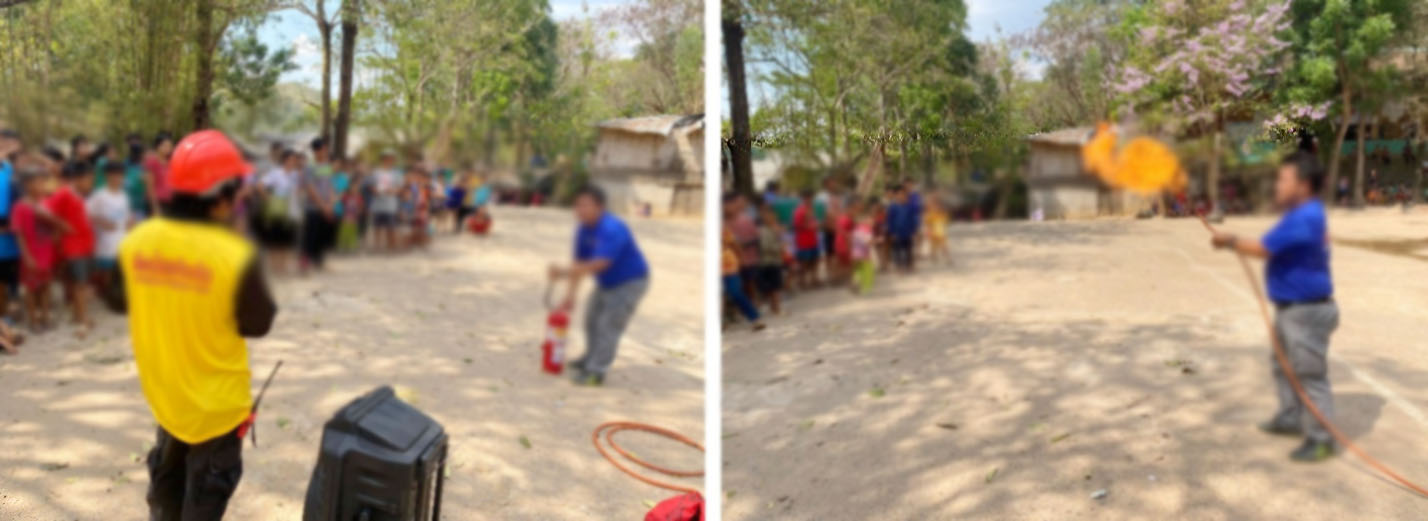 อบรมทีมเยาวชนอาสาสมัครป้องกันภัยเพื่อให้นำความรู้ไปถ่ายทอดสู่ชุมชนที่บ้านแม่สุริน จังหวัดแม่ฮ่องสอน เมื่อวันที่ 24 มีนาคม 2566